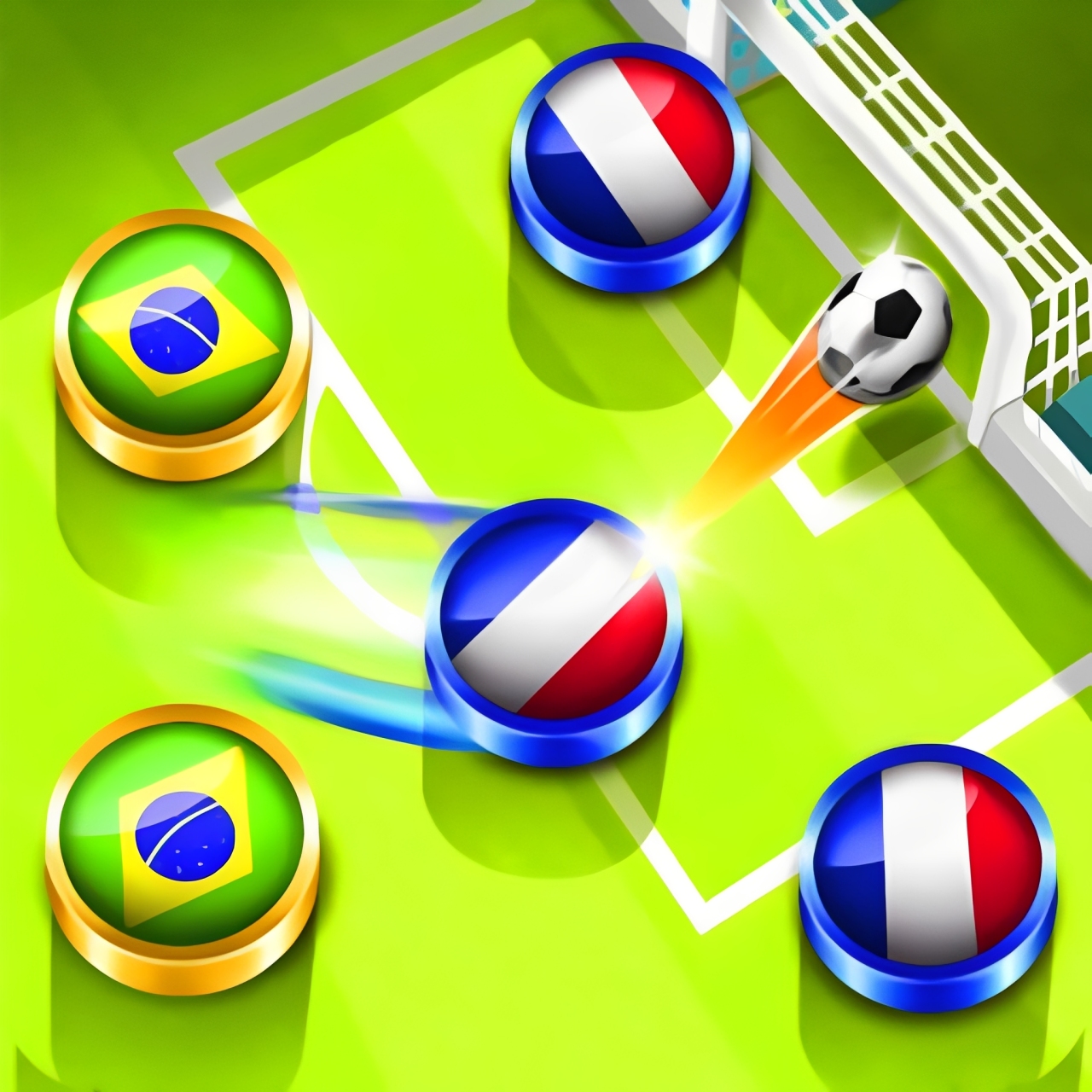Soccer Caps is a sports game that takes you back to the legendary "bottle cap soccer" game, but in an upgraded and more professional version. The game is turn-based. You have time to think and calculate your moves like a chess player on the field. Every shot and collision between the bottle caps and the ball is calculated according to real-world physics. A slight deviation in angle can cause the ball to narrowly miss the post. There's nothing more satisfying than taking a long-range "rainbow" shot, sending the ball winding through the opponent's defense and straight into the net. Step onto the field now, plan your perfect angles, and strike the winning shot!